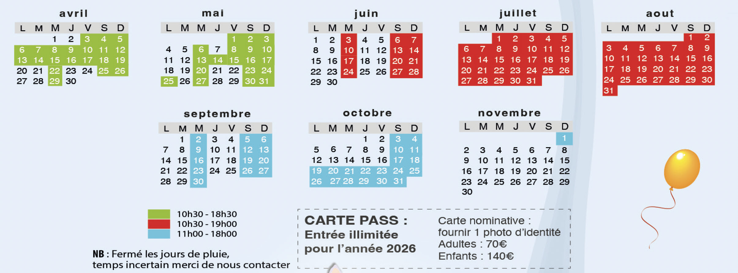 N’hésitez pas à nous consulter pour les tarifs groupe, CE, écoles, centres de loisirs.